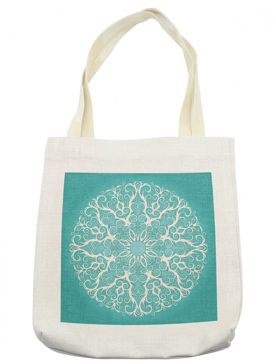 Turquoise Tote Bag Round Curving Tree Branches Pattern Infinite Circle Symmetrical Cuves Floral Design Cloth Linen Reusable Bag For Shopping Books Beach And More 16 5 X 14 Cream By Ambesonne Walmart Com